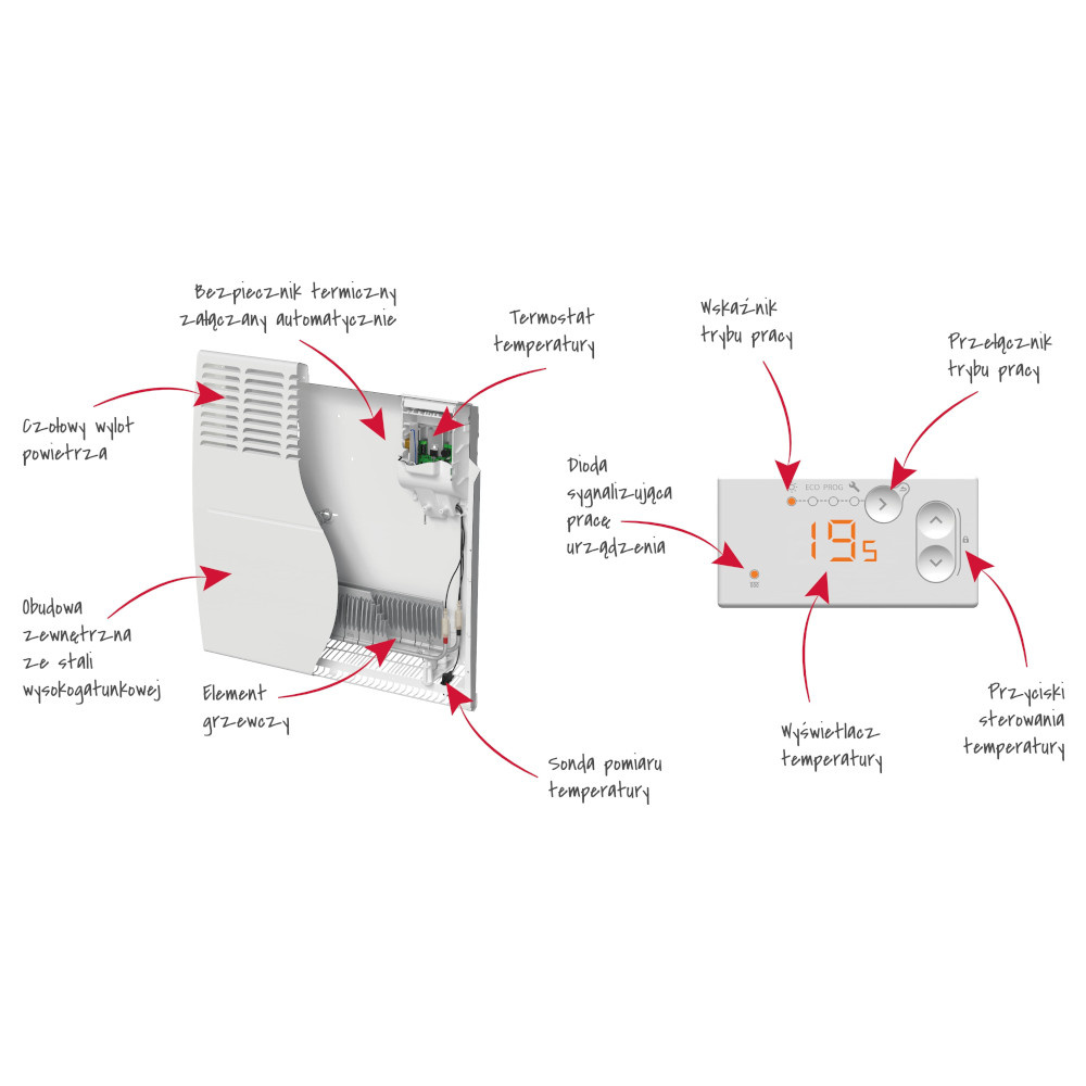 Konwektor jest wyposażony w funkcję blokady ustawień termostatu, co zapobiega niepożądanym zmianom ustawień, np. przez dzieci. To gwarantuje bezpieczeństwo i spokój, że ogrzewanie jest bezpieczne dla Twoich najbliższych.