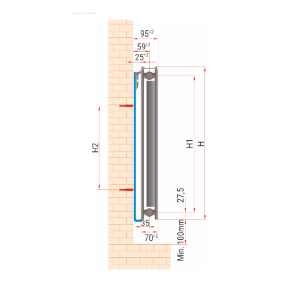 Grzejniki z podłączeniem bocznym nie zawierają wieszaków montażowych w zestawie. Zakup odpowiednich wieszaków jest niezbędny do prawidłowego i bezpiecznego zamocowania urządzenia — akcesoria montażowe są oferowane i sprzedawane oddzielnie. Prosimy o uwzględnienie tego przy składaniu zamówienia oraz o sprawdzenie specyfikacji wybranego modelu w celu dobrania kompatybilnych elementów.