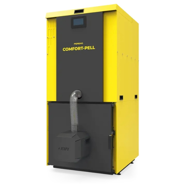 • Kocioł c.o. na pellet COMFORT-PELL 30 kW PEREKO to kompaktowy kocioł 5. klasy z obrotowym palnikiem KIPI, automatycznym czyszczeniem i zdalnym sterowaniem przez Wi-Fi.