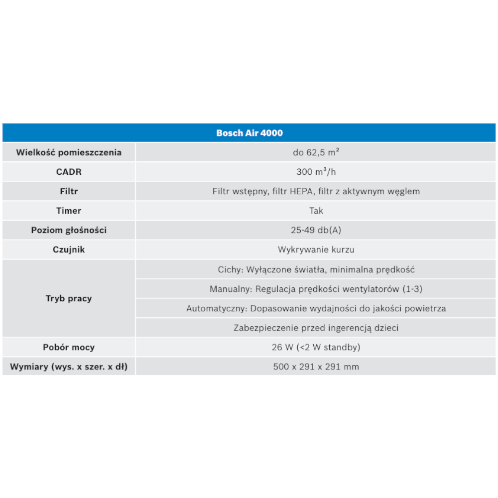 Bosch Air 4000 to nowoczesne urządzenie, które łączy inteligentne funkcje, cichą pracę, wysoki poziom wygody i stylowy design. To oczyszczacz, który wspiera moje zdrowie i poprawia jakość życia każdego dnia.