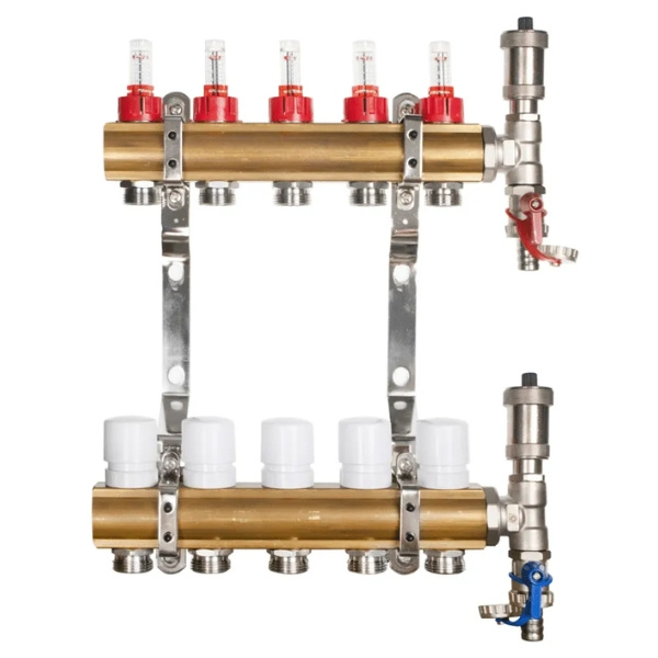 Rozdzielacz mosiężny do podłogówki Pluvio cieszy się uznaniem instalatorów ze względu na prostotę montażu oraz wysoką niezawodność. Jest gotowy do podłączenia do instalacji zasilania, powrotu oraz poszczególnych pętli ogrzewania podłogowego.