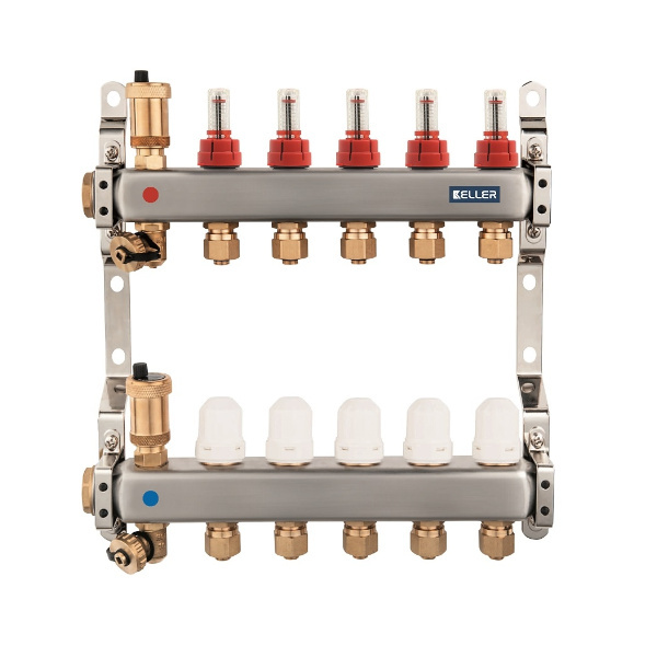 Dobór rozdzielacza podłogówki zależy od liczby pętli, przepływów i planowanego strefowania. Wybierz model z rotametrami, zaworami termostatycznymi i odpowietrzeniem, dopasowany do szafki i hydrauliki instalacji. Typowe przepływy to 1,5–2 l/min na pętlę 80–100 m. Rozdzielacze Keller, KAN-therm i Duro System gwarantują równowagę obiegów, łatwy serwis i stabilną pracę podłogówki przez lata.
