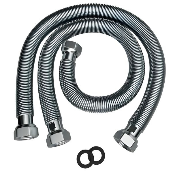 W zestawie są dwa przewody elastyczne o długości 0,6–0,9 m oraz cztery uszczelki dopasowane do gwintów 3/4".
