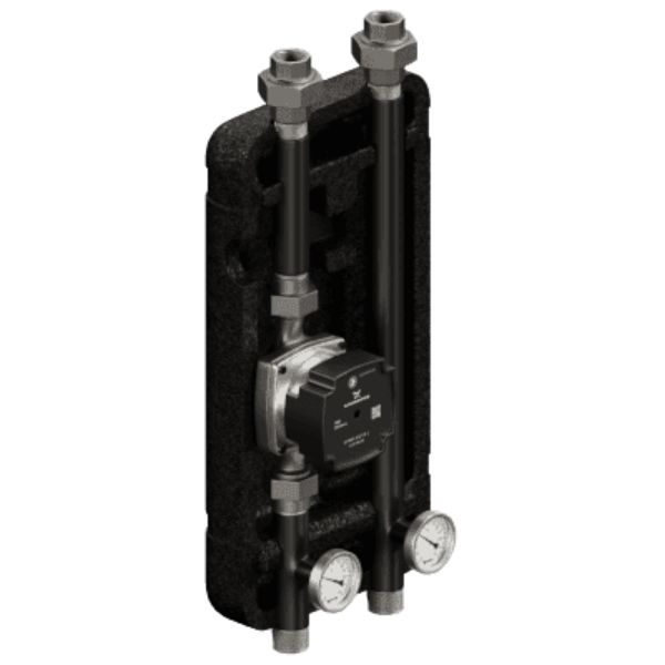 Zastosowanie grupy UNI jest kluczowe w nowoczesnych instalacjach hybrydowych. Jest to idealny wybór do zasilania obiegów wysokotemperaturowych, takich jak tradycyjne grzejniki płytowe czy aluminiowe (szczególnie w starszych budynkach), nagrzewnice powietrza w systemach wentylacji mechanicznej, a także jako priorytetowy obieg ładowania wężownicy w zasobniku ciepłej wody użytkowej (C.W.U.). Dzięki prostej i solidnej konstrukcji, grupa ta charakteryzuje się legendarną bezawaryjnością, a wyposażenie w zawory odcinające z termometrami pozwala na pełną kontrolę nad procesem dystrybucji ciepła.